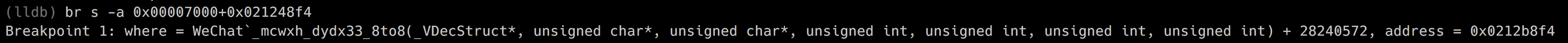 SettingMyProfileViewController MMRegionPickerDidChoosRegion,找出方法入口基址 - 根据ASLR与基址计算出内存地址,通过LLDB设置断点: