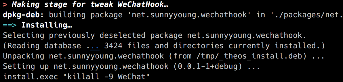 Makefile中THEOS_DEVICE_IP为设备IP - 执行命令: